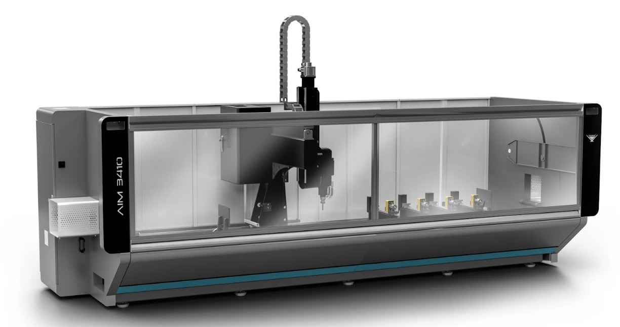 AIM 3410 and AIM 3410 CBC are CNC controlled 4-axis machine designed specifically for machining all types of aluminium & PVC profiles available on the market. With the 4th. axis feature, it can perform the machining operations on 3 surfaces of profiles. Quick tool changing is provided by the movable and in-line type magazine unite with 8 pcs of tool capacity. The tool magazine is mounted on the movable machining head in order to minimize the tool change time. The machine provides a flexible processing opportunity especially in facade applications with its 180 mm diameter saw. The machine has automatic clamp recognition and positioning feature. The movable cabin of the machine is equipped with a door having a transparent polycarbonate window to facilitate the monitoring of the workpiece processing by the operator. Thus, the safe operation of the operator is ensured.